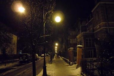 Keywords: gdansk poland city cities urban night evening buildings street outside winter snow ice vehicles