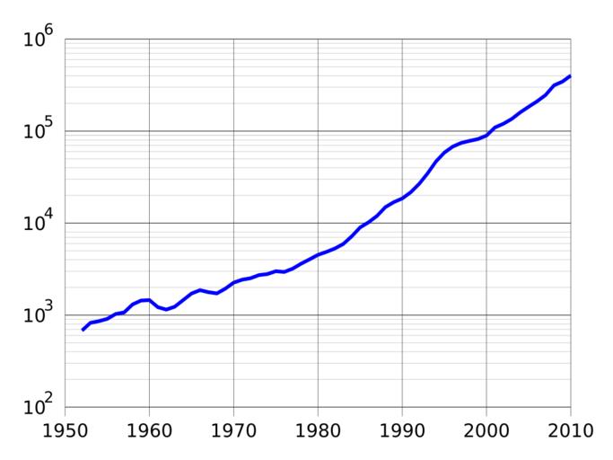 | Keywords: GDP of China in hundred million RMB-semilog.svg en GDP of China from 1952 to 2010 in hundred million Yuan Renminbi Data from http //www chinability com/GDP htm GDP growth in China 1952-2011 2014-12-15 own Delphi234 other versions File GDP of China in RMB-semilog svg in billion Yuan cc-zero Uploaded with UploadWizard Economy of the People's Republic of China GDP chart Diagrams labelled with numbers only | ||||