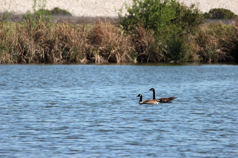 Keywords: geese swim river canada water goose nature swimming bird outdoors wildlife animals waterfowl pair couple spring