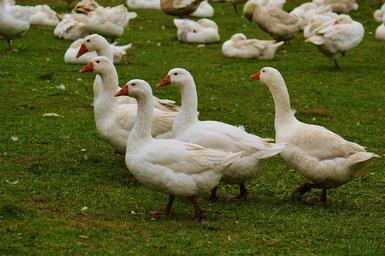 Keywords: geese white cute plumage animal domestic goose nature poultry livestock meadow bill farm goose meadow group