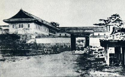 Keywords: Gejyou-Mon.jpg en Gejyou-Mon ja 下乗 Japanese book Japanese castle complete volume 10 published by Japanese castle society 日 城郭協会 日 城郭全集 第十巻 より Author Meiji era 1868-1912 明治時代 PD-Japan-oldphoto Gates of Edo Castle