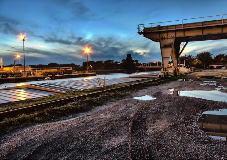 Keywords: gelsenkirchen city harbor rhine herne canal dusk water port channel