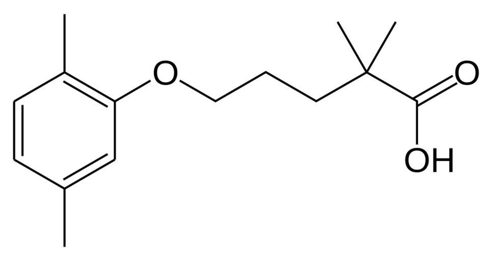 Keywords: Gemfibrozil.svg Skeletal formula of gemfibrozil Created using http //www acdlabs com/download/chemsk html ACD/ChemSketch 10 0 and Inkscape Own 2007-04-06 Fvasconcellos Image Gemfibrozil gif Image Gemfibrozil png Fibrates Phenol ethers