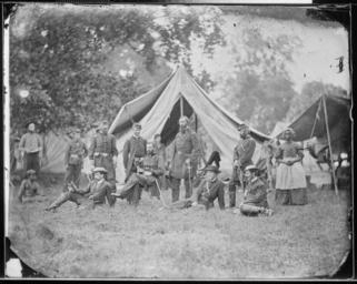 Keywords: u.s. national archives usnationalarchives civil war civilwar mathew brady mathewbrady nara:arcid=526381 blackandwhite monochrome outdoor black and white Original Caption: Gen. Fitz John Porter and staff of seven. Hqrs. 5th Army Corps, Army of the Potomac, Harrison's Landing, James River, Va., Aug. 1862: Major Joseph Kirkland, Colenel Locke, Captain Mason, Major Charles McMillen, Captain John F. McQuade, Major Montieth, Colonel Norton. U.S. National Archives’ Local Identifier: 111-B-2186 From:: Series: Mathew Brady Photographs of Civil War-Era Personalities and Scenes, (Record Group 111) Photographer: Brady, Mathew, 1823 (ca.) - 1896 Coverage Dates: ca. 1860 - ca. 1865 Subjects: American Civil War, 1861-1865 Brady National Photographic Art Gallery (Washington, D.C.) Persistent URL: catalog.archives.gov/id/526381" Repository: Still Picture Records Section, Special Media Archives Services Division (NWCS-S), National Archives at College Park, 8601 Adelphi Road, College Park, MD, 20740-6001. For information about ordering reproductions of photographs held by the Still Picture Unit, visit: www.archives.gov/research/order/still-pictures.html Reproductions may be ordered via an independent vendor. NARA maintains a list of vendors at www.archives.gov/research/order/vendors-photos-maps-dc.html Access Restrictions: Unrestricted Use Restrictions: Unrestricted Original Caption: Gen. Fitz John Porter and staff of seven. Hqrs. 5th Army Corps, Army of the Potomac, Harrison's Landing, James River, Va., Aug. 1862: Major Joseph Kirkland, Colenel Locke, Captain Mason, Major Charles McMillen, Captain John F. McQuade, Major Montieth, Colonel Norton. U.S. National Archives’ Local Identifier: 111-B-2186 From:: Series: Mathew Brady Photographs of Civil War-Era Personalities and Scenes, (Record Group 111) Photographer: Brady, Mathew, 1823 (ca.) - 1896 Coverage Dates: ca. 1860 - ca. 1865 Subjects: American Civil War, 1861-1865 Brady National Photographic Art Gallery (Washington, D.C.) Persistent URL: catalog.archives.gov/id/526381" Repository: Still Picture Records Section, Special Media Archives Services Division (NWCS-S), National Archives at College Park, 8601 Adelphi Road, College Park, MD, 20740-6001. For information about ordering reproductions of photographs held by the Still Picture Unit, visit: www.archives.gov/research/order/still-pictures.html Reproductions may be ordered via an independent vendor. NARA maintains a list of vendors at www.archives.gov/research/order/vendors-photos-maps-dc.html Access Restrictions: Unrestricted Use Restrictions: Unrestricted |