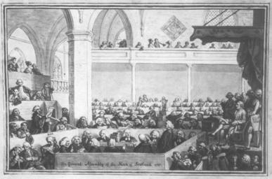 | Keywords: General Assembly at the Tron Kirk, Edinburgh.jpg en The General Assemby of the Kirk of Scotland 1787 by David Allan The chair of honour is occupied by the Earl of Dalhousie and the speaker at the bar is the advocate James Boswell 1783 Scanned from F Maclean A Concise History Of Scotland London 1970 Creator David Allan PD-old-100 Church of Scotland Tron Kirk | ||||