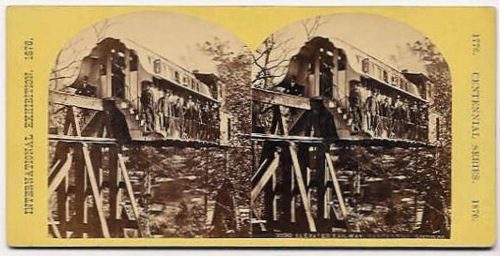 | Keywords: General LeRoy Stone's Centennial Monorail of 1876.jpg en General LeRoy Stone's steam monorail was built at the Centennial Exposition marking the USA's 100th anniversary in 1876 It connected the Horticultural Hall with the Agricultural Hall via an elevated track extending about 155 m 170 yards and appears to have been called The Saddleback Railroad 1876 http //www aqpl43 dsl pipex com/MUSEUM/LOCOLOCO/centen/centen htm General LeRoy Stone's Centennial Monorail in The Museum of Retro Technology Historic photograph kindly provided by Robert M Vogel other versions PD-old-70-1923 Uploaded with UploadWizard Centennial Monorail |