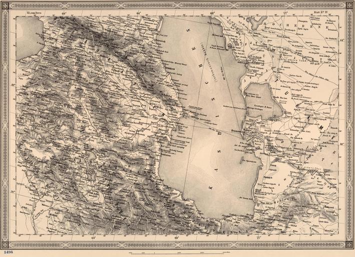 | Keywords: General Map of Central Asia - Plate 4 (1874).jpg Kurztitel General-Karte von Central-Asien; Vollständiger Titel General-Karte von Central-Asien bearbeitet nach den besten und neuesten Russischen und Englischen quellen <br />General-Karte von Central-Asien IV platte Maßstab 1 3 024 000; Maße 125 x 137 cm <br /> General Karte von Central Asien ist eine große detaillierte Karte im Jahre 1874 von der Militär Geographischen Institut Wien produziert Die Karte ist auf 12 getrennten Platten nummeriert I-XII; ein 13 Platte gibt einen berblick und eine nummerierte Anleitung wie die Teile zusammenpassen Die Karte deckt eine riesige Fläche im Nordwesten von der russischen Region nördlich des Kaspischen Meeres begrenzt ist; im Südwesten von heutigen Saudi-Arabien und Oman; nordöstlich von der westlichen Mongolei; und im Südosten von Gujarat Indien Der Titel Zeichenerklärung und Erklärung der Abkürzungen sind auf Tafel X in der unteren linken südwestlichen Ecke Sieben Schuppen in verschiedenen Längeneinheiten Englisch Italienisch Russisch Türkisch Persisch Chinesisch und metrischen vorgesehen sind an der Unterseite der Platte XII Die gezeigten Merkmale sind Städte und Gemeinden; nationalen und provinziellen Grenzen; Türme Burgen und Ruinen; bestehende und geplante Eisenbahnstrecken; Telegrafenleitungen; und Straßen Nach dem Titel wird die Karte mit den besten und neuesten russischen und englischen Quellen überarbeitet Russland und die British Empire waren Rivalen um Einfluss in Zentralasien in was später als The Great Game und sie spezielles Know-how hatten über die Region gewonnenen wissenschaftlichen und militärischen Expeditionen und Handelskontakte Short Title General Map of Central Asia; Full Title General map of Central Asia edited based on the best and the newest Russian and English sources <br />General map of Central Asia IV plate Scale 1 3 024 000; Dimension 125 × 137 cm <br /> General map of Central Asia is a large detailed map produced in 1874 by the Military Geographic Institute of Vienna The map is on 12 separate plates numbered I XII; a 13th plate gives an overview and a numbered guide to how the parts fit together The map covers a huge expanse bounded to the northwest by the region of Russia north of the Caspian Sea; to the southwest by present-day Saudi Arabia and Oman; to the northeast by western Mongolia; and to the southeast by Gujarat India The title key to symbols and explanation of abbreviations are on Plate X in the lower left-hand southwestern corner Seven scales in different distance units English Italian Russian Turkish Persian Chinese and metric are provided at the bottom of Plate XII The features shown include cities and towns; national and provincial borders; towers fortresses and ruins; existing and projected railroads; telegraph lines; and roads According to the title the map is revised with the best and newest Russian and English sources Russia and the British Empire were rivals for influence in Central Asia in what came to be called the Great Game and they had special expertise about the region gained from scientific and military expeditions and commercial contacts К аткое название Общая ка та Цент альной Азии; Полное название Общая ка та Цент альной Азии от едакти ованная с учетом лучших и новейших оссийских и английских источников <br />Общая ка та Цент альной Азии IV лист асштаб 1 3 024 000; Разме ы 125 × 137 см <br /> Общая ка та Цент альной Азии п едставляет собой большую под обную ка ту выпущенную в 1874 г Военным геог афическим институтом в Вене Ка та занимает 12 отдельных листов п онуме ованных от I до XII; на 13-м листе п едоставлена общая инфо мация и уководство с нуме ацией для соединения частей Ка та охватывает обши ный егион на севе о-западе он г аничит с те ито ией России к севе у от Каспийского мо я; на юго-западе с те ито ией сов еменной Саудовской А авии и Омана на севе о-востоке с Западной онголией а на юго-востоке с п овинцией Гуджа ат Индия азвание ключ к символам и пояснения к сок ащениям п иводятся на Листе X в левом нижнем углу юго-запад асштаб указан в семи азличных единицах изме ения английских итальянских усских ту ецких пе сидских китайских и мет ических в нижней части Листа XII В число объектов на ка те входят большие и малые го ода; г аницы госуда ств и п овинций; башни к епости и уины; существующие и п оекти уемые железные до оги; телег афные линии и до оги Из названия следует что ка та была пе есмот ена с учетом лучших и новейших оссийских и английских источников Российская и Б итанская импе ии сопе ничали за установление влияния в Цент альной Азии вели так называемую Большую иг у Они очень хо ошо знали егион благода я данным полученным в ходе научных и военных экспедиций а также в езультате
