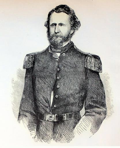 Keywords: people drawing General Lyon was born at Ashford, Conn., July 14th 1819; was graduated from the United States Military Academy at West Point, and entered the army July, 1841; took part in the Indian campaign in Florida; was sent to Mexico at the commencement of the war, and was wounded at the Belen Gate; was appointed captain in 1851, and remained in active frontier duty in Kansas until in April, 1861. He was placed in charge of the United States Arsenal at St. Louis, Mo., and afterward appointed commandant of the post. In May, 1861, he enrolled a large number of volunteers and surrounded Camp Jackson, compelling a prompt surrender. He was killed at the battle of Wilson's Creek. (from Frank Leslie's Illustrated History of the Civil War..., edited by Louis Shepheard Moat, Published by Mrs. Frank Leslie, New York, 1895) General Lyon was born at Ashford, Conn., July 14th 1819; was graduated from the United States Military Academy at West Point, and entered the army July, 1841; took part in the Indian campaign in Florida; was sent to Mexico at the commencement of the war, and was wounded at the Belen Gate; was appointed captain in 1851, and remained in active frontier duty in Kansas until in April, 1861. He was placed in charge of the United States Arsenal at St. Louis, Mo., and afterward appointed commandant of the post. In May, 1861, he enrolled a large number of volunteers and surrounded Camp Jackson, compelling a prompt surrender. He was killed at the battle of Wilson's Creek. (from Frank Leslie's Illustrated History of the Civil War..., edited by Louis Shepheard Moat, Published by Mrs. Frank Leslie, New York, 1895) |