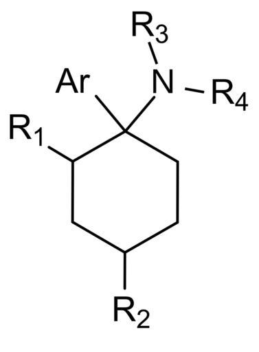 Keywords: General struct arylcyclohexylamine.svg en General structure of arylcyclohexylamine fr Structure générale of arylcyclohexylamine 2012-04-04 own Snipre cc-zero Uploaded with UploadWizard Cyclohexane derivatives