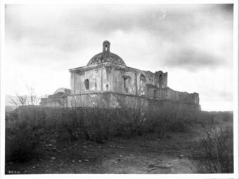 | Keywords: General view from the rear of the ruin of Mission Tumacacori, near Tucson, Arizona, ca.1908 (CHS-4220).jpg Mission San JosĂ© de Tumacácori ca 1908 ” near Tucson Arizona A dome topped with a short cylindrical bell tower also topped with a dome dominates the structure Stucco has fallen from the exterior walls in numerous places exposing the brick construction beneath Sonoran Desert scrub brush grows thickly in the foreground In present day Tumacacori National Historical Park ---- Call number CHS-4220 Photographer James George Wharton Filename CHS-4220 Coverage date circa 1908 Part of collection California Historical Society Collection 1860-1960 Format glass plate negatives Type images Part of subcollection Title Insurance and Trust and C C Pierce Photography Collection 1860-1960 Repository name USC Libraries Special Collections Accession number 4220 Microfiche number 1-151- Archival file chs_Volume96/CHS-4220 tiff Repository address Doheny Memorial Library Los Angeles CA 90089-0189 Geographic subject country USA Format aacr2 2 photographs glass photonegative photoprint b w ; 17 x 22 cm Rights Digitally reproduced by the USC Digital Library; From the California Historical Society Collection at the University of Southern California Subject adlf religious facilities Project USC Repository email specol usc edu Contributing entity California Historical Society Date created circa 1908 Publisher of the digital version University of Southern California Libraries Format aat photographic prints; photographs Geographic subject state Arizona Legacy record ID chs-m16707; USC-1-1-1-14013 Access conditions Send requests to address or e-mail given Phone 213 821-2366; fax 213 740-2343 Subject file heading Outside California -- Arizona -- General; Arizona -- Mission Tumacacori Subject lcsh Missions Spanish Subject Tumacacori Mission circa 1908 date created James George Wharton http //digitallibrary usc edu/cdm/ref/collection/p15799coll65/id/16640 PD-old-70-1923 Mission San JosĂ© de Tumacácori 1908 Arizona in the 1900s 1908 in the United States Arizona Black and white photographs of Arizona Mission Tumacacori Images from USC Digital Library uploaded by Fæ California Historical Society Collection 1860-1960 Glass plate negatives Photographs by George Wharton James |