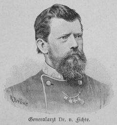 | Keywords: Generalarzt Dr. v. Fichte.jpg Generalarzt Dr von Fichte brigadier general of Medical Corps MD von Fichte Krieg und Sieg 1870-71 Kulturgeschichte Herausgeber Julius von Pflugk-Harttung self scanned 1895-1896 Creator Richard Brend'amour PD-old German military physicians of the Franco-Prussian War Medical officers Woodcuts by Richard Brend'amour Brigadier generals |