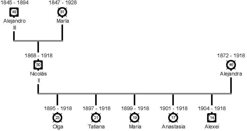Keywords: Genograma romanov.png Árbol genealógico de los ´ltimos miembros de la dinastía rusa Romanov 2007-02-20 own assumed Dvr daniel~commonswiki Romanov family trees