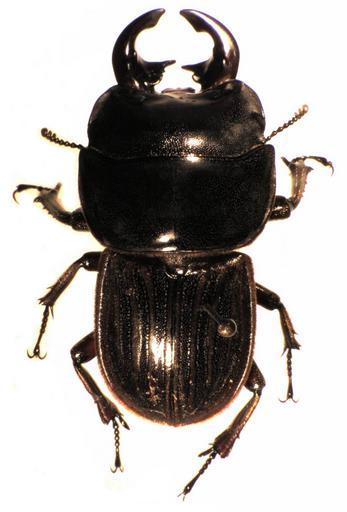 Keywords: Geodorcus helmsi male 2.jpg en adult male Geodorcus helmsi own photo taken by me S E Thorpe 2010-05-06 NEW ZEALAND SI Codfish Island Sealers Bay walking on kamahi broadleaf and rimu trunks at night 26 Mar 2004 E Brook Geodorcus helmsi