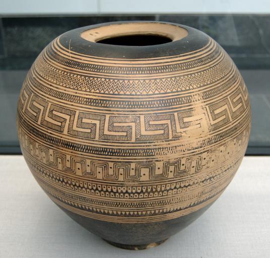 | Keywords: Geometric pyxis Staatliche Antikensammlungen 6232.jpg Große Pyxis Löcher im Mündungsfalz um den Deckel zu verschnüren und das Gefäß zu tragen Streifenrhythmik Ornamentzonen stets durch drei Reifenlinien geschieden Attisch um 850 v Chr Great pyxis Holes next to the opening in order to tie the cover and carry the jug Rythmic decoration ornamentation zones are always separated by three tire lines Attica ca 850 BC Grande pyxide Trous présents sur l'ouverture pour attacher le couvercle et porter la jarre Motifs rythmiques les zones de décorations sont séparées par trois lignes parallèles Attique v 850 av J -C Museum Staatliche Antikensammlungen Room 1 object history credit line accession number Inv 6232 User Bibi Saint-Pol own work 2007-02-09 other versions Ancient Greek pottery pyxides 9th-century BC pottery in Germany Staatliche Antikensammlungen - Room 1 Greek Geometric pottery in the Staatliche Antikensammlungen |