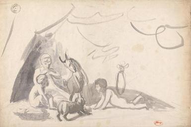 Keywords: George Romney - Children with a Goat and a Dog - Google Art Project.jpg Inscribed in graphite upper left 90 Not on View Gray wash over graphite on medium slightly textured cream laid paper pastoral dog goat children boys woman dress kerchief flute nudes figure study special url_id SQFf4v4MCNeUQA PD-old-100-1923 1802 Google Art Project works by George Romney Drawings by George Romney |