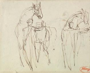 Keywords: George Romney - Sketches for a Man with a Horse - Google Art Project.jpg Inscription _Marks en watermark top Not on View Brown ink on medium slightly textured cream laid paper horse animal man wig figure study sporting art special url_id mQFQAaJhgcPY7Q PD-old-100-1923 1802 Drawings by George Romney Google Art Project works by George Romney Collections of the Yale Center for British Art |
