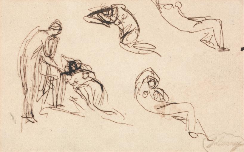 Keywords: George Romney - Standing Figure and Four Reclining Figures - Google Art Project.jpg Not on View Brown ink on moderately thick slightly textured beige laid paper reclining standing figures figure study special url_id 7AGiqXPENnKOnQ PD-old-100-1923 1802 Drawings by George Romney Google Art Project works by George Romney Collections of the Yale Center for British Art |