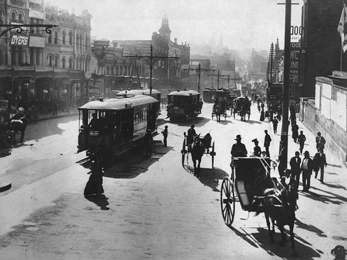 Keywords: archives state records nsw staterecordsnsw newsouthwales blackandwhite sydney george street georgestreet streets vehicles trams horse and cart horseandcart buildings shops people pedestrians brickfield hill monochrome road outdoor snow black and white View of George Street, Sydney Dated: c. 1/01/1900 Digital ID: 17420_a014_a0140001203r Rights: www.records.nsw.gov.au/about-us/rights-and-permissions We'd love to hear from you if you use our photos. Many other photos in our collection are available to view and browse on our website using Photo Investigator. View of George Street, Sydney Dated: c. 1/01/1900 Digital ID: 17420_a014_a0140001203r Rights: www.records.nsw.gov.au/about-us/rights-and-permissions We'd love to hear from you if you use our photos. Many other photos in our collection are available to view and browse on our website using Photo Investigator. |