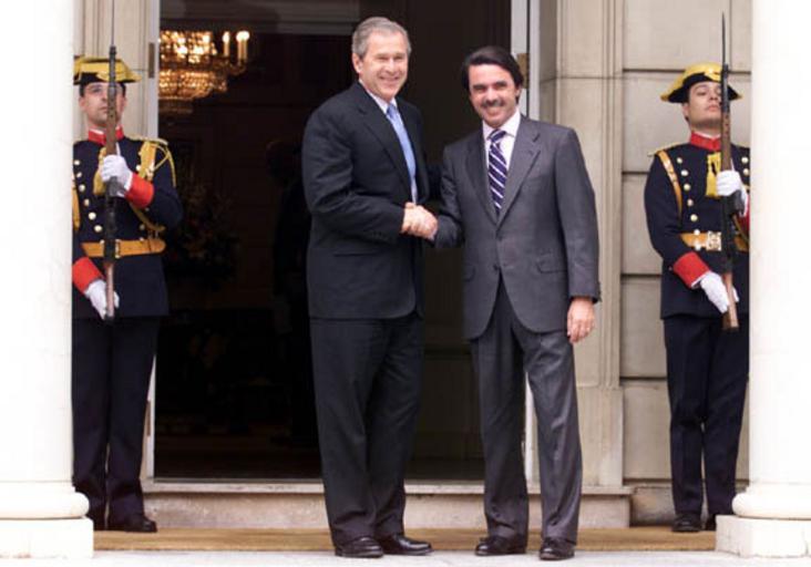 | Keywords: George W.Bush and José María Aznar handshake 2001-06-12.jpg en Joint Press Conference with President George W Bush and President Jose Maria Aznar - Madrid Spain http //georgewbush-whitehouse archives gov/news/releases/2001/06/images/20010612-6b html Joint Press Conference with President George W Bush and President Jose Maria Aznar White House photo 2001-06-12 PD-USGov José María Aznar and George W Bush George W Bush in 2001 La Moncloa Photographs by Eric Draper 2001 photographs Military people in 2001 June 2001 in Spain 2001 events in Madrid Historical images of Madrid George W Bush shaking hands |