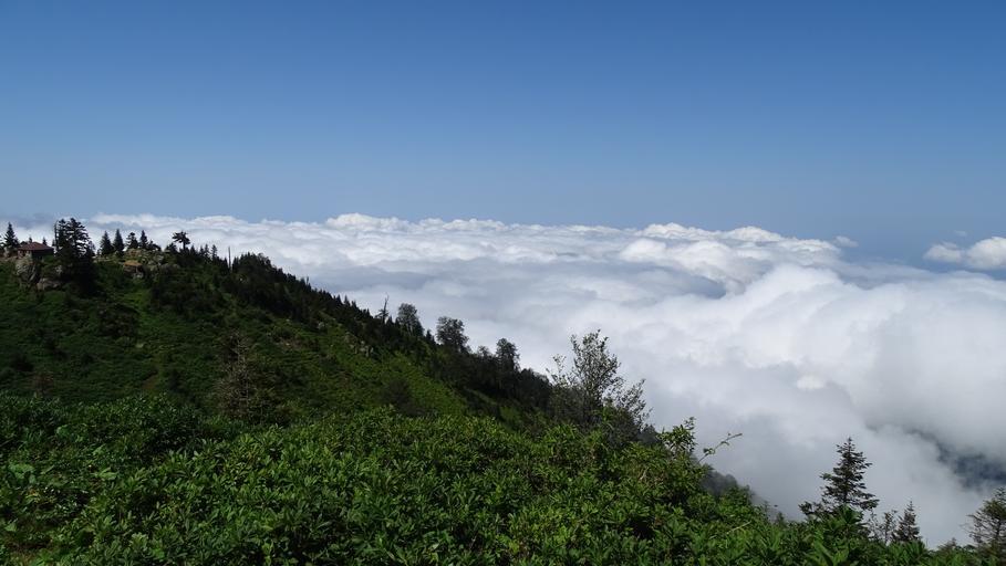 Keywords: georgia clouds green forest mountains the top of the mountain white clouds