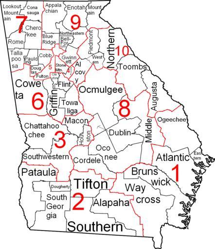 | Keywords: Georgia judicial districts and circuits map.png  This is a map of Georgia showing the judicial districts and circuits <br/> Legend legend Judicial District boundary 1px solid red red Judicial District number 1 Judicial Circuit boundary 1px solid black black Judicial Circuit name Toombs Este es un mapa de Georgia que muestra los distritos judiciales y los circuitos <br/> Leyenda legend límites del Distrito Judicial 1px solid red red Número de Distrito Judicial 1 límite Circuito Judicial 1px solid black black nombre del Circuito Judicial Toombs Map_of_Georgia_highlighting_Oconee_County svg 50 2012-04-04 15 29 UTC Map_of_Georgia_highlighting_Oconee_County svg David Benbennick derivative work Presidentman Removed colors added lines text and numbers Presidentman Map_of_Georgia_highlighting_Oconee_County svg </nowiki> Uploaded with derivativeFX Geography of Georgia U S state Courts of the United States Maps of Georgia U S state Maps of judicial districts in the United States |