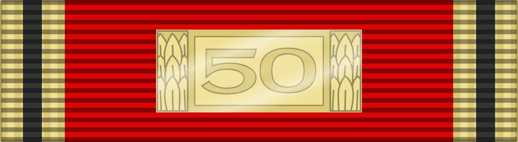 | Keywords: GER Bundesverdienstkreuz 2b BVK 50Jahre.svg en Ribbon bar Order of Merit of the Federal Republic of Germany “ Cross of Merit on Ribbon for Labour Jubilee; 1957-1966 pl Baretka Order ZasÅ‚ugi RFN “ Krzyż ZasÅ‚ugi na WstÄ™dze za Jubileusz Pracy; 1957-1966 de Bandschnalle Verdienstorden der Bundesrepublik Deutschland “ Verdienstkreuz am Bande für Arbeitsjubilare; 1957-1966 http //ordensmuseum de/bundesverdienstorden/miniaturen-zum-bundesverdienstorden/miniaturen-zum-verdienstkreuz-am-bande-fur-arbeitsjubilare/ Verdienstkreuz am Bande für Arbeitsjubilare from http //www ordensmuseum de/bvo/index htm ordensmuseum de own Mboro 2010-01-12 Ribbon bars of Germany Order of Merit of the Federal Republic of Germany PD-GermanGov |