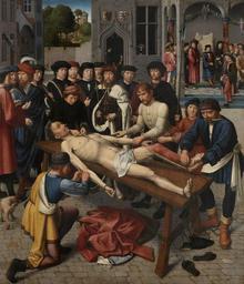 | Keywords: Gerard David - The Judgment of Cambyses, panel 2 - The shedding of the corrupt judge Sisamnes.jpg Artwork Creator Gerard David The Judgment of Cambyses Het oordeel van Cambyses Justice diptych for the Council Chamber of Bruges Town Hall Panel 2 - According to an old Persian story sisamnes was a corrupt judge who was skinned alive on the orders of King Cambyses The judicial throne from which Otanes Sisamnes' son and successor was henceforth to dispense justice is covered by skin Gerechtigheidsdiptiek voor de schepenzaal van het stadhuis in Brugge Paneel 2 - Volgens een oud Perzisch verhaal was Sisamnes een corrupte rechter die op bevel van koning Cambyses levend gevild werd Rechts bovenaan het paneel zetelt Otanes als rechter op de huid van zijn vader Diptyque de justice commandé pour la salle des échevins de l'hôtel de ville de Bruges deuxième panneau D'après un ancien récit persan Sisamnès était un juge corrompu qui fut condamné à être écorché vif sur ordre du roi Cambysse 1498/1499 Oil panel cm 202 172 8 institution Groeningemuseum object history credit line accession number GRO0041 I 1 http //www aiwaz net/panopticon/flaying-of-the-corrupt-judge-sisamnes/gi1167c161 aiwaz net<br/>2 http //www lukasweb be/en/photo/the-judgement-of-cambyses-5 Lukas - Art in Flanders VZW PD-old-100-1923 DEFAULTSORT Gerard David The Judgment of Cambyses Part 2 The Judgment of Cambyses by Gerard David b Death penalty Torture in art Portraits from Norbert Schneider The Art of the Portrait 122 |
