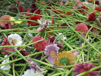 Keywords: gerbera floristry cut flowers flowers blütenmeer pink yellow colorful purple committee production color