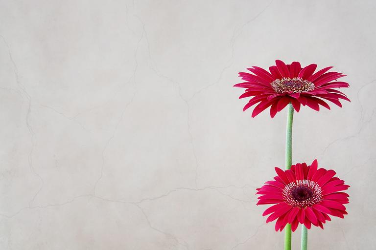 Keywords: gerbera flower flowers pink red close text freedom negative space schnittblume