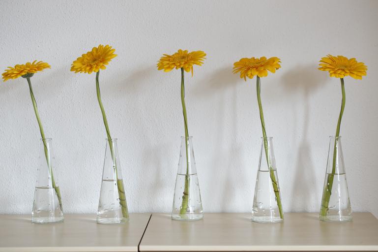 Keywords: gerbera yellow flower blossom bloom schnittblume yellow flower orange decoration sunny nature bloom yellow orange vases series five deco