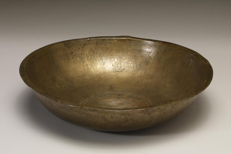 | Keywords: German - Bowl with Scenes from the Legend of St Ursula - Walters 5369 - View A.jpg The narrative on this basin tells the story of Saint Ursula and her 11 000 companions who embarked on a pious journey from England to the Continent only to be met by the Huns in Cologne and slaughtered Ursula was warned of her impending doom according to the legend but willingly accepted martyrdom to join the kingdom of heaven The narrative is executed in a simple engaging manner The movement of Ursula and her companions is echoed in the narrative progression around the bowl as one turns it to follow the story The kinetic dimension of the display would likely have made this manner of recounting the saint's legend more memorable than simple recitation Indeed some scholars have suggested that bronze vessels of this type might have been used for teaching while others maintain that they might have played a role in liturgical hand-washing performed by nuns In the latter instance the swirling ocean crossed by Ursula must have looked quite realistic when seen through the rippling water that filled the bowl century 12 Medieval copper alloy cm 6 5 28 7 accession number 53 69 6988 Signol M E G Reidy Sale London July 19 1929 Bacri Paris Léon Gruel Paris Henry Walters Baltimore by purchase Walters Art Museum Henry Walters Acquired by Henry Walters Transcription Engraved on rim of bowl DESPONSANDA DAT HIS RESPONSIO BLANDA / VIRGINEO QUE GRAVES MITTIT PC AGMINE NAVES / POSTQUAM TURBA RUDIS FUIT HIS EXERCITA LUDIS CARBASA PANDUNTUR AGRIPPINA QUE FERUNTUR / QUE LOCA VIRGINEIS DISCUNT SACRANDA TROPHEIS / HINC VIA DIRGITUR QUA MOX BASILEA SUBITUR; Translation The betrothed gives a favorable answer / He sends great ships for the crowd of young women / After the uneducated crowd was practiced in these games the sails are raised bearing them to Agippina Cologne / This place they teach is made sacred through the triumph of the virgins / from here they took the direct way to Basel; Transcription Engraved in the border around the central medalion URSULA SOLLICITE SACRA DISCIT DOGMATA VITAE; Translation Ursula eagerly teaches the holy dogma of life place of origin Germany Walters Art Museum license Bowl with Scenes from the Legend of St Ursula in the Walters Art Museum 53 69 Media contributed by the Walters Art Museum needs category review |