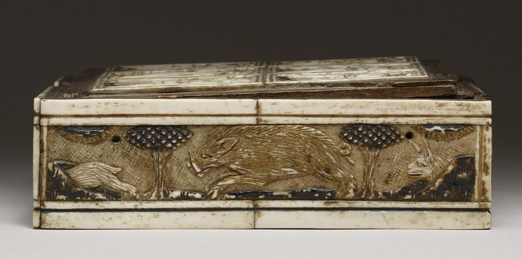 | Keywords: German - Box for Board Games - Walters 7193 - Left.jpg Board games such as chess checkers and backgammon were increasingly popular in Europe during the later Middle Ages after it had been brought back by crusading knights from the Near East Portable chess boxes with scenes of hunting dancing and courtship were mass-produced in inexpensive materials to contain the game pieces The playing board is set into the box's underside between 1440 1470 Late Medieval paint gilt wood cm 6 3 15 4 18 5 accession number 71 93 9461 Leon Gruel Paris Henry Walters city Baltimore Walters Art Museum Henry Walters Acquired by Henry Walters 1925 Life in the Gothic Age Norfolk Museum of Art Norfolk 1955 Medieval Games of Love and War The Walters Art Gallery Baltimore 1995-1996 place of origin Alsace France Walters Art Museum license Medieval art in the Walters Art Museum Renaissance applied arts in the Walters Art Museum German art in the Walters Art Museum Media contributed by the Walters Art Museum needs artist review Empty chessboards |