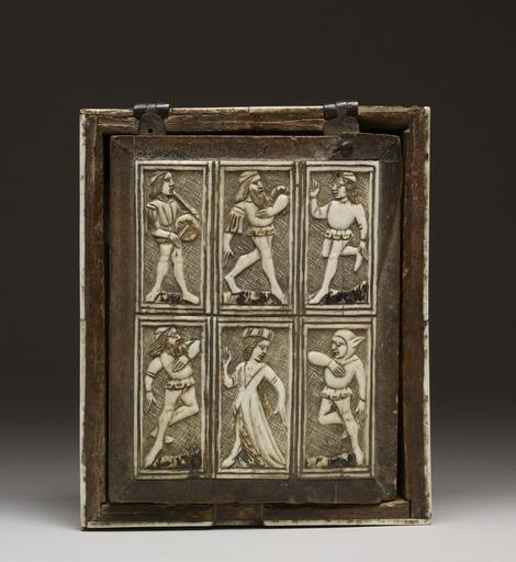 Keywords: German - Box for Board Games - Walters 7193 - Top.jpg Board games such as chess checkers and backgammon were increasingly popular in Europe during the later Middle Ages after it had been brought back by crusading knights from the Near East Portable chess boxes with scenes of hunting dancing and courtship were mass-produced in inexpensive materials to contain the game pieces The playing board is set into the box's underside between 1440 1470 Late Medieval paint gilt wood cm 6 3 15 4 18 5 accession number 71 93 9461 Leon Gruel Paris Henry Walters city Baltimore Walters Art Museum Henry Walters Acquired by Henry Walters 1925 Life in the Gothic Age Norfolk Museum of Art Norfolk 1955 Medieval Games of Love and War The Walters Art Gallery Baltimore 1995-1996 place of origin Alsace France Walters Art Museum license Medieval art in the Walters Art Museum Renaissance applied arts in the Walters Art Museum German art in the Walters Art Museum Media contributed by the Walters Art Museum needs artist review Draughts boards 15th-century chess Reliefs of dancers Medieval dance in art |