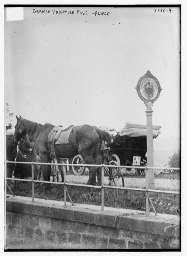 | Keywords: German Frontier Post -- Alsace (LOC).jpg Bain News Service publisher German Frontier Post -- Alsace between ca 1914 and ca 1915 1 negative glass ; 5 x 7 in or smaller Notes Title from data provided by the Bain News Service on the negative Photograph shows German sign reading Deutsches Reich in Alsace region of France at the beginning of World War One Source Flickr Commons project 2011 Forms part of George Grantham Bain Collection Library of Congress Subjects World War 1914-1918 Alsace Format Glass negatives Rights Info No known restrictions on publication Repository Library of Congress Prints and Photographs Division Washington D C 20540 USA http //hdl loc gov/loc pnp/pp print hdl loc gov/loc pnp/pp print General information about the Bain Collection is available at http //hdl loc gov/loc pnp/pp ggbain hdl loc gov/loc pnp/pp ggbain Higher resolution image is available Persistent URL http //hdl loc gov/loc pnp/ggbain 17076 hdl loc gov/loc pnp/ggbain 17076 Call Number LC-B2- 3212-4 http //www flickr com/photos/library_of_congress/5987842364/ German Frontier Post -- Alsace LOC LOC-image ggbain 17076 Uploaded by ComputerHotline http //www flickr com/people/8623220 N02 The Library of Congress http //www loc gov/rr/print/195_copr html noknown The Library of Congress Flickr Commons PD-Bain File Upload Bot Magnus Manske 2013-05-22 Former border between Alsace-Lorraine and France |