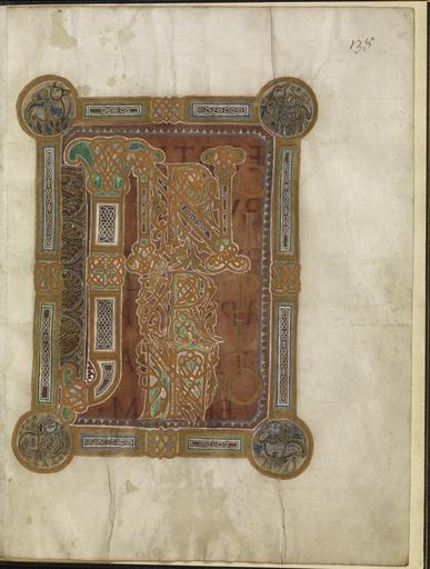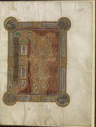 Keywords: German - In principio - Walters W7514R - Full Page.jpg During the early Medieval period artists created sophisticated interplays between word and image Often the opening words of each Gospel would be intricately decorated with the ornament and letters intertwined Although the Medieval viewer would know what it should say and had no need to read it deciphering the page and thereby focusing attention on the sacred word of God became an act of spiritual contemplation ca 950 975 Ottonian parchment with ink paint and gold cm 31 2 24 2 accession number W 751 4R 13279 Sir Thomas Phillips ms 14122 London ca 1855 date and mode of acquisition unknown Phillips Collection date and mode of acquisition unknown A Chester Beatty December 1920 mode of acquisition unknown Walters Art Museum October 1952 by purchase Museum purchase 1952 Illuminated Manuscripts Masterpieces in Miniature The Walters Art Gallery Baltimore 1984-1985 Schatzkammer Henry Walters' German Manuscripts The Walters Art Museum Baltimore 2006 Checkmate Medieval People at Play The Walters Art Museum Baltimore 2010 place of origin Corvey Germany Walters Art Museum license 2D Walters MS W751 - Corvey Gospel fragment In principium erat verbum |