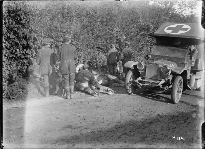 Keywords: blackandwhite monochrome outdoor black and white German prisoners burying a dead horse behind New Zealand lines in France. At right is an ambulance. Photograph taken 1918 by Henry Armytage Sanders. Inscriptions: Inscribed - Photographer's title on negative -bottom right: H1241. Quantity: 1 b&w original negative(s). Physical Description: Dry plate glass negative 4.75 x 6.5 inches German prisoners burying a horse, France. Royal New Zealand Returned and Services' Association :New Zealand official negatives, World War 1914-1918. Ref: 1/2-013788-G. Alexander Turnbull Library, Wellington, New Zealand. natlib.govt.nz/records/23120948 German prisoners burying a dead horse behind New Zealand lines in France. At right is an ambulance. Photograph taken 1918 by Henry Armytage Sanders. Inscriptions: Inscribed - Photographer's title on negative -bottom right: H1241. Quantity: 1 b&w original negative(s). Physical Description: Dry plate glass negative 4.75 x 6.5 inches German prisoners burying a horse, France. Royal New Zealand Returned and Services' Association :New Zealand official negatives, World War 1914-1918. Ref: 1/2-013788-G. Alexander Turnbull Library, Wellington, New Zealand. natlib.govt.nz/records/23120948