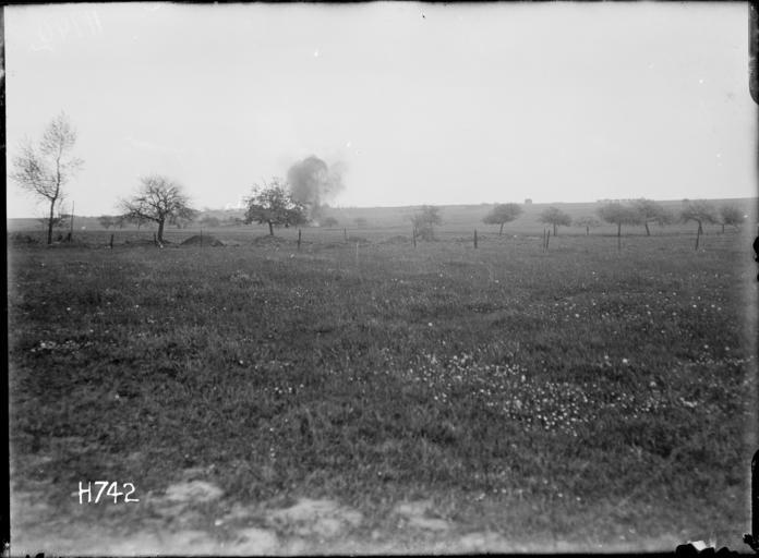 | Keywords: the great war thegreatwar great war greatwar world war one worldwarone world war i worldwari wwi first world war firstworldwar bertrancourt artillery artillery explosion artilleryexplosion explosion shelling blackandwhite monochrome outdoor black and white An explosion is seen in the distance as German artillery shells a French orchard at Bertrancourt near the lines in World War I. Photograph taken 11 May 1918 by Henry Armytage Sanders. Inscriptions: Inscribed - Photographer's title on negative -bottom left: H742. Quantity: 1 b&w original negative(s). Physical Description: Dry plate glass negative 4.75 x 6.5 inches German shelling of a French orchard, World War I. Royal New Zealand Returned and Services' Association :New Zealand official negatives, World War 1914-1918. Ref: 1/2-013346-G. Alexander Turnbull Library, Wellington, New Zealand. natlib.govt.nz/records/22789571 An explosion is seen in the distance as German artillery shells a French orchard at Bertrancourt near the lines in World War I. Photograph taken 11 May 1918 by Henry Armytage Sanders. Inscriptions: Inscribed - Photographer's title on negative -bottom left: H742. Quantity: 1 b&w original negative(s). Physical Description: Dry plate glass negative 4.75 x 6.5 inches German shelling of a French orchard, World War I. Royal New Zealand Returned and Services' Association :New Zealand official negatives, World War 1914-1918. Ref: 1/2-013346-G. Alexander Turnbull Library, Wellington, New Zealand. natlib.govt.nz/records/22789571 |