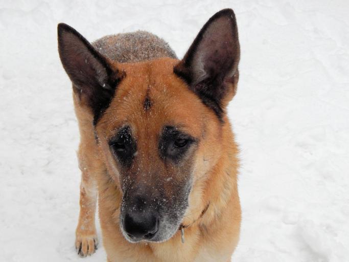 Keywords: german shepherd canine dog pet german police dog nature outside animal snow male majestic close-up