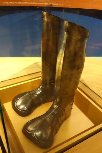 | View Original: | German Tudor sabatons and greaves, possibly worn by a Lanzichenecchi official, 16th century - Bata Shoe Museum - DSC00108.JPG (3648x5472) | |||