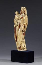 | Keywords: German - Virgin and Child - Walters 71233 - Three Quarter Left.jpg This Virgin and Child was carved from a curved piece of ivory corresponding to the shape of the original elephant tusk Only the front is carved suggesting that it was attached to a flat surface such as a shrine or diptych A few areas of color are preserved from the original polychromy paint The smooth drapery is a German feature that differs from the rippled and pleated fabric of French statuettes between 1350 1375 Medieval ivory paint cm 21 2 8 3 2 accession number 71 233 4045 Professor Paul Soubeiran de Pierres Montpellier France Professor Paul Soubeiran de Pierres Sale New York December 8 1927 lot 69 Henri Daguerre Paris date and mode of acquisition unknown Henry Walters Baltimore 1928 mode of acquisition unknown Walters Art Museum Henry Walters Acquired by Henry Walters 1928 Ivory The Sumptuous Art The Walters Art Gallery Baltimore 1983-1984 Smith College Museum of Art Early Medieval Research Smith College Museum of Art Northampton 1996 place of origin Rhineland Germany Walters Art Museum license Medieval ivory in the Walters Art Museum German art in the Walters Art Museum Sculptures of Madonna and Child in the United States Sculptures of Madonna and Child |