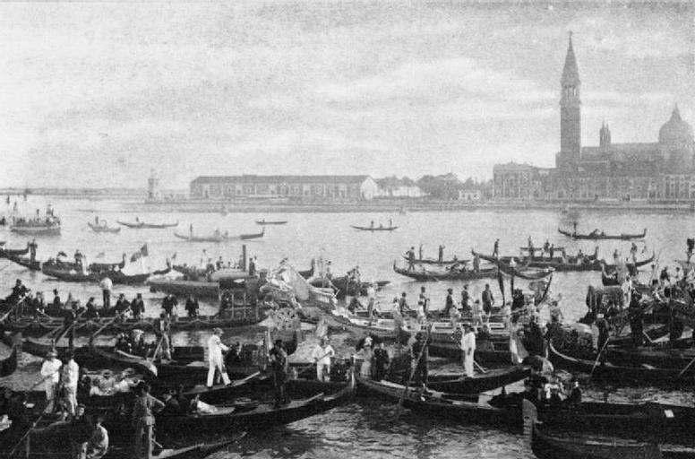 | Keywords: Germany Before the First World War 1890 - 1914 HU68399.jpg en Germany Before the First World War 1890 - 1914<br/> The visit of Kaiser Wilhelm II and Kaiserin Auguste to Palestine in 1898 Snapshot taken by the Kaiserin from the Imperial Royal Yacht HOHENZOLLERN as it sailed from Venice Italy on 13 October A flotilla of gondolas bid farewell to the Royal Party San Giorgio Maggiore is visible in the background Photograph from a personal collection compiled by the Kaiserin and presented by her to Hugh 5th Earl of Lonsdale Auguste Viktoria Kaiserin of Germany 1898-10-13 HU 68399 205018345 http //media iwm org uk/iwm/mediaLib//7/media-7568/large jpg PD-old-70 Germany URAA date Author died in 1921 Associated people and organisations Auguste Viktoria Kaiserin of Germany Associated places Venice Veneto Italy Associated events Visit of Kaiser Wilhelm II and Kaiserin Auguste Viktoria to Palestine October 1898 Associated themes Germany pre-1914 Italy pre-1914 Palestine pre-1914 Associated keywords Royalty Towns and Cities tourism Lonsdale Hugh 5th Earl Of photographs Imperial War Museum Pre-1914 collection Images uploaded by Fæ Historical images of Venice Photographs by Augusta Viktoria of Schleswig-Holstein 1898 in Venice Exterior of St Mark's Basilica |