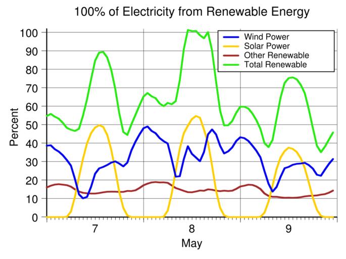 Keywords: Germany Renewable Energy 2016-05-07 to 09.svg translate yes en On May 8 2016 for almost four hours from 11 am to 1 pm from 1 15 to 2 15 pm and from 4 15 to 4 45 pm all of Germany's electricity was from renewable energy Excess electricity was exported Data source https //transparency entsoe eu/generation/r2/actualGenerationPerProductionType/show entsoe 2016-05-18 own Delphi234 other versions Generated with Wikimedia SVG Chart SVG Chart/box cc-zero Photovoltaic power statistics of Germany Wind energy statistics of Germany Renewable energy statistics of Germany May 2016 in Germany |