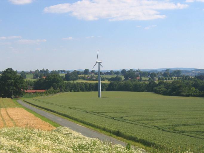 Keywords: germany sky clouds scenic landscape windmill turbine field forest trees woods summer spring nature outside country countryside