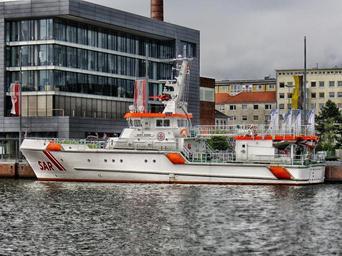 Keywords: germany vessel boat ship buildings shoreline bay harbor water coast guard outside hdr