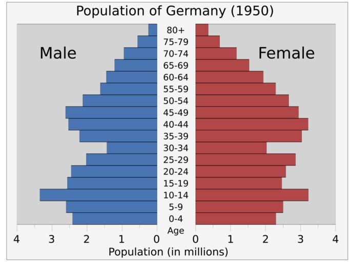 | Keywords: Germanypop-1950.svg translate yes en 1950 population pyramid of Germany from UN estimates World Population Prospects http //esa un org/unpd/wpp/Excel-Data/population htm The 2012 Revision 2014-08-11 own Delphi234 cc-zero Uploaded with UploadWizard Population pyramids of Germany |