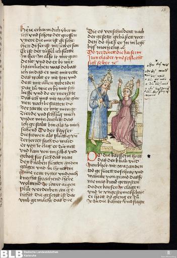 | Keywords: Gesta Romanorum - Donaueschingen 13r.jpg en Gesta Romanorum - Donaueschingen 145 a manuscript from Upper Swabia in Germany from circa 1452 de Titel Gesta Romanorum - Donaueschingen 145 Erschienen Oberschwaben um 1452 Online-Ausg Karlsruhe Badische Landesbibliothek 2012 Umfang 97 Bl ; 30 5 x 21 5 cm Anmerkung Original Handschrift auf Papier - Schreibsprache schwäbisch URN urn nbn de bsz 31-28735 info Signatur Donaueschingen 145 1452 http //digital blb-karlsruhe de/blbhsl/Handschriften/content/titleinfo/585870 Badische Landesbibliothek author other versions PD-Art Gesta Romanorum Uploaded with UploadWizard |