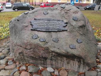 Keywords: Ghetto Baranovichi st Gritzevtza 03.jpg ru емо иальный камень на месте главных во от Ба ановичского гетто по ул Г ицевца аходится на Т-об азном пе ек ёстке улиц Г ицевца и Ца юка позади Дома офице ов 2011-11-13 own Vadim Akopyan 53 129703 26 013093 cc-zero Uploaded with UploadWizard Ghetto Baranavičy Holocaust memorials in Baranavičy |