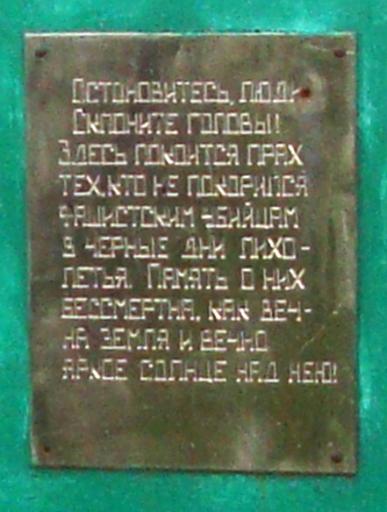 Keywords: Ghetto Kokhanovo (Tolochin District) 2a.jpg ru Π Π°Π΄ΠΏΠΈΡΡ Π½Π° ΡΡΠ°Ρ ΠΎΠΌ ΠΏΠ°ΠΌΡΡΠ½ΠΈΠΊΠ΅ Π½Π° ΠΌΠ΅ΡΡΠ΅ ΡΠ±ΠΈΠΉΡΡΠ²Π° Π΅Π²Ρ Π΅Π΅Π² Π΄Π΅Ρ Π΅Π²Π½ΠΈ ΠΠΎΡ Π°Π½ΠΎΠ²ΠΎ Π’ΠΎΠ»ΠΎΡΠΈΠ½ΡΠΊΠΎΠ³ΠΎ Ρ Π°ΠΉΠΎΠ½Π° Π²ΠΎ Π²Ρ Π΅ΠΌΡ Π₯ΠΎΠ»ΠΎΠΊΠΎΡΡΠ° Π² ΡΠ½Π²Π°Ρ Π΅ 1942 Π³ΠΎΠ΄Π° Π£ΡΡΠ°Π½ΠΎΠ²Π»Π΅Π½ Π² 1994 Π³ΠΎΠ΄Ρ own ΠΡ ΠΊΠ°Π΄ΠΈΠΉ Π¨ΡΠ»ΡΠΌΠ°Π½ 2009-10-28 54 465905 29 990264 Ghetto Kochanava TalaΔyn District Cc-zero |