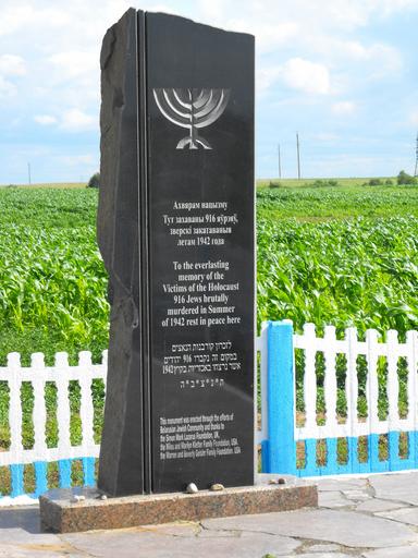 Keywords: Ghetto Luzhki (Sharkowshchyna District) 4b.jpg ru Памятник на месте асст ела летом 1942 года 916 ев еев - узников гетто в Лужках аходится около де евни Лужки Ша ковщинского айона в 50 мет ах от до оги 3002 2016-07-10 own Avner other versions 55 332236 27 885630 cc-zero Ghetto Lužki Šarkaŭščyna District |