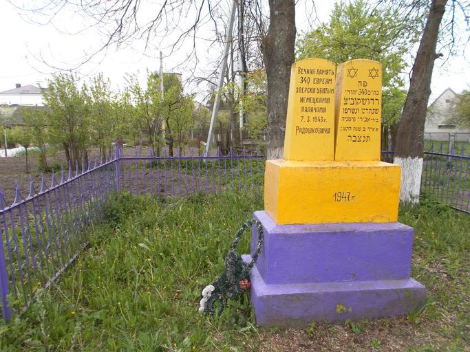 | Keywords: Ghetto Radoshkovichy 1e.jpg  ru Памятник на месте убийства 340 ев еев Радошковичей 7 ма та 1943 года  аходится около Радошковичской школы-инте ната улица Гастелло 20 2014-05-06 10 06 50 own Avner cc-zero Ghetto Radaškovičy Uploaded with UploadWizard |